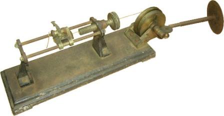 No.25 Mosso氏力量計 Ergograph(part) , エルゴグラフ Ergograph according to Mosso (Ergograph nach Mosso) E.ZIMMERMANN LEIPZIG-BERLIN (1928-1945) Nr.1095 動作檢查 実験心理学 / 大槻快尊著,東京:成美堂,明治 44.9 (1911) 実験心理学講義 / 野上俊夫,上野陽一著 東京:同文館,明治 42.9 (1909) 実験心理写真帖 / 東京帝国大学文科大学心理学教室編 ,東京:弘道館,明治43.12 Grundzüge der physiologischen Psychologie / Wundt Wilhelm Max , Leipzig : Engelmann (1902) Fatigue / Mosso Angelo Translated into English by Margaret and W. B. Drummand, London: Swan (1906) Experimental psychology and pedagogy for teachers, normal colleges, and universities / Schulze Rudolf, London : George Allen (1912) A text-book of human physiology / Tigerstedt, Robert, New York and London : D. Appleton and Co. (1906) Laboratory equipment for psychological experiments / Judd Charles Hubbard, New York : C. Scribner's sons (1907) Advanced lessons in practical physiology for students of medicine / Burton-Opitz, Russell, b. ,Philadelphia and London, W. B. Saunders company(1920) Manual of mental and physical tests / Whipple Guy Montrose, Baltimore : Warwick & York (1924) A New Type of Ergograph, with a Discussion of Ergographic Experimentation, American Journal of Psychology.(1903) Vol. 14: 510-40, (253-258) Woodworth, R.S., & Schlosberg, H. (1954). Experimental Psychology. (2nd ed.). New York: Holt, Rinehart & Winston. Ergograph (Forearm holder). Ergograph, writing apparatus. 図のように指で重りを持ち上げる作業を連続しておこない、身体疲労,持久力などを測定した。腕を固定する部分は残っていない。 http://museum-eng.eng.niigata-u.ac.jp/psychology/b/i06.jpg http://museum-eng.eng.niigata-u.ac.jp/psychology/P4.jpg エルゴグラフ Ergograph (AHAP Apparatus Collection) Size about 460W x 165D